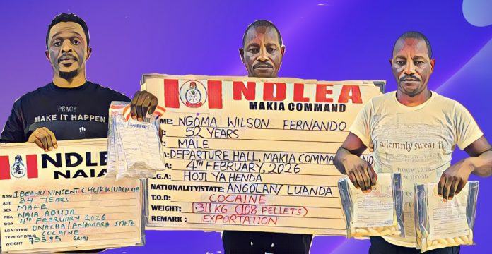 Operatives of the National Drug Law Enforcement Agency, NDLEA, have intercepted multiple drug trafficking attempts across Nigeria’s international airports, arresting a China-based businessman and two foreign nationals who excreted dozens of cocaine pellets after ingesting them for smuggling.